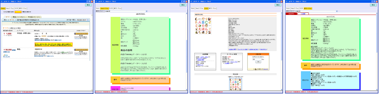 2.ヤフオク、Amazonマーケットプレイス、楽天オークション、モバオクでの商品価格を一覧表示