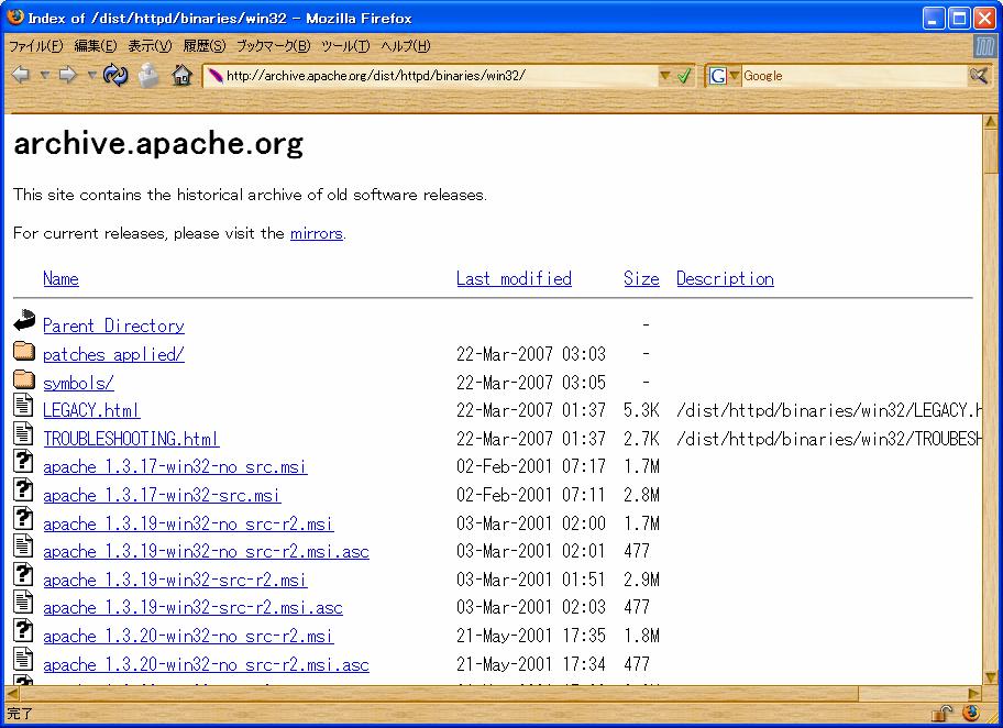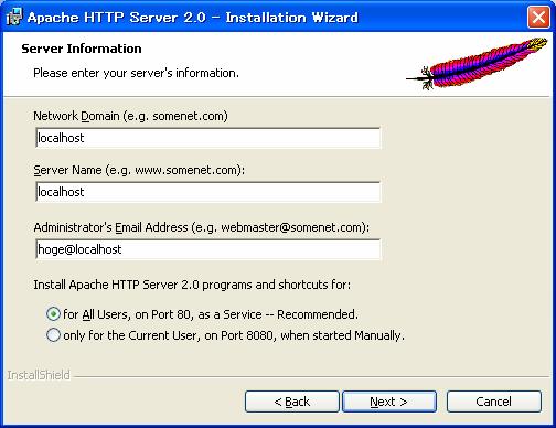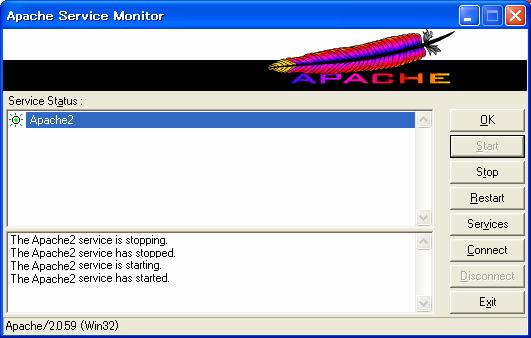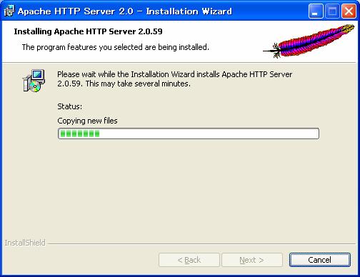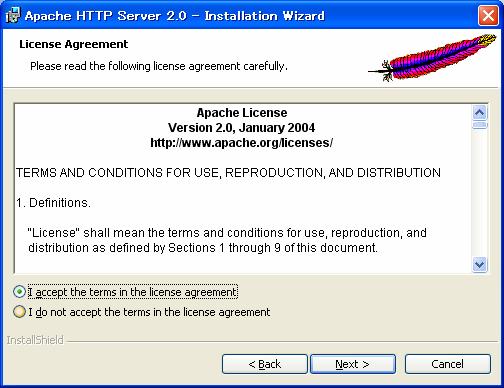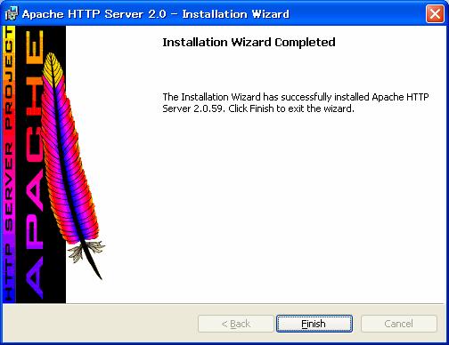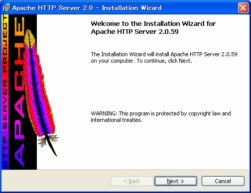ダウンロードをしたapache_2.0.59-win32-x86-no_ssl.msiをダブルクリックして、インストールを開始します。