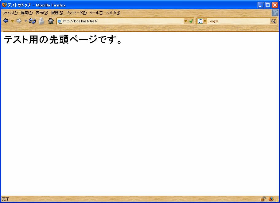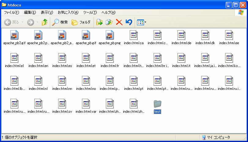 インストールしたディレクトリ配下のhtdocsの下に、testディレクトリを作成します