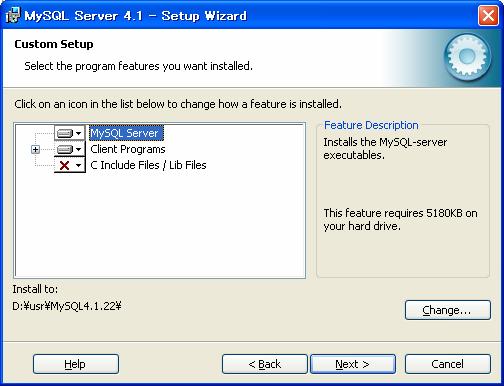 - MySQL 4.1.22のインストール