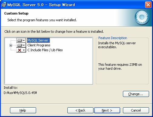 - 同様にMySQL 5.0.45もインストール