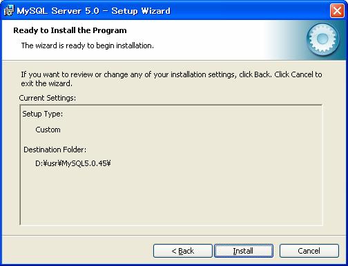インストール先にd:\usr\MySQL5.0.45\を入力しNextボタンをクリック
