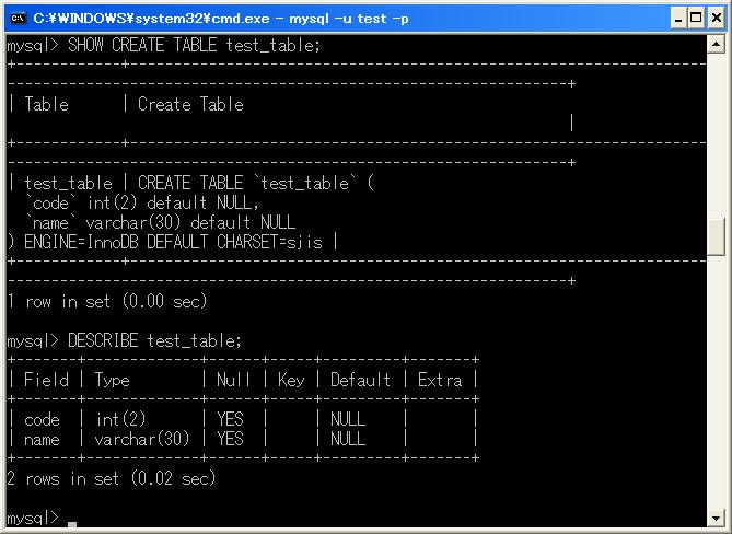 INSERT INTO test_table VALUES(2,'日本語表示もテスト');