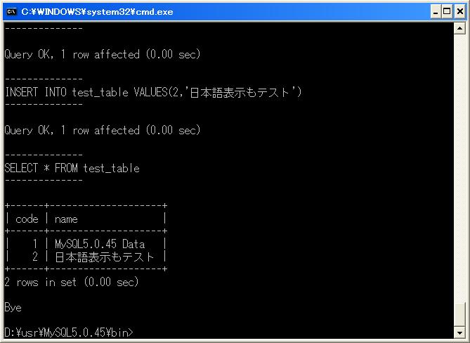 INSERT INTO test_table VALUES(1,'MySQL5.0.45 Data');