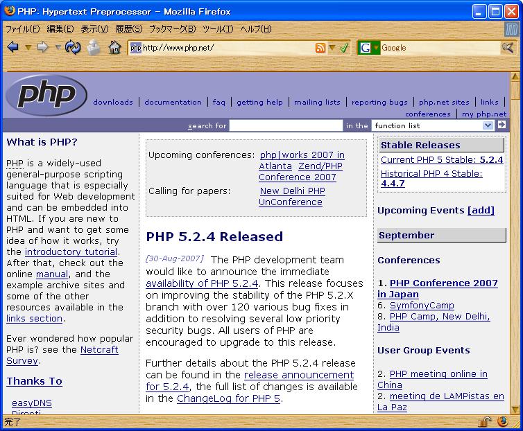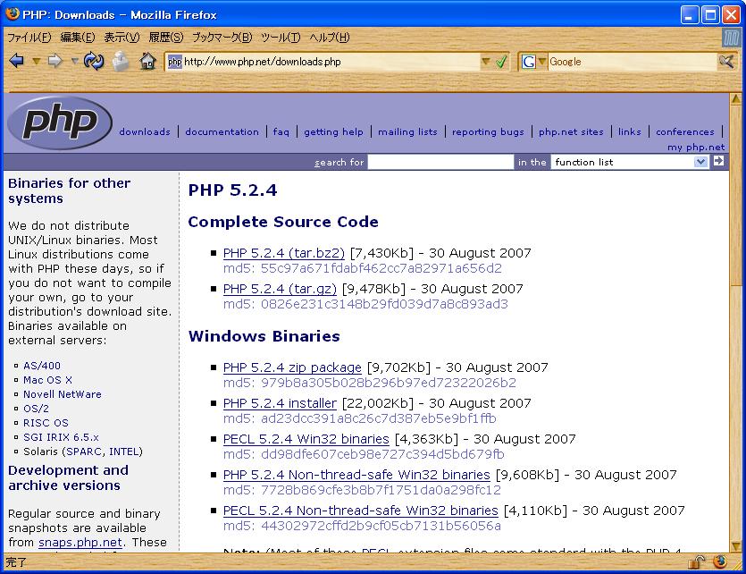 DownLoad のページhttp://www.php.net/downloads.phpにアクセス