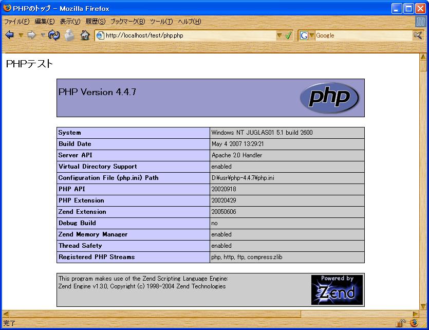 ダウンロードしたphp-4.4.7-Win32.zipをディレクトリ付きで解凍し、