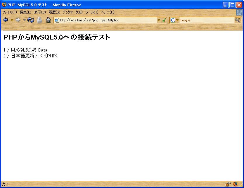 <h2>PHPからMySQL5.0への接続テスト</h2>