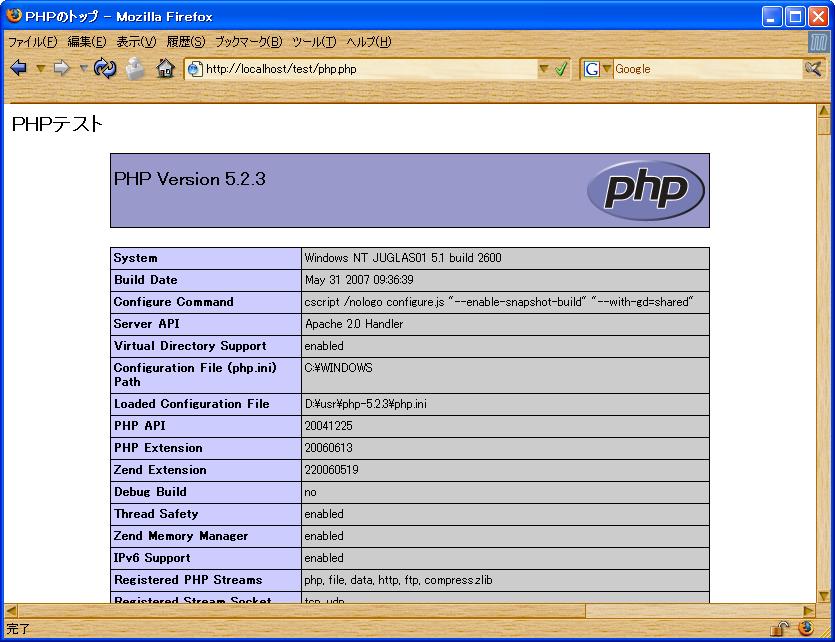 同様にダウンロードしたphp-5.2.3-Win32.zipをディレクトリ付きで解凍し、